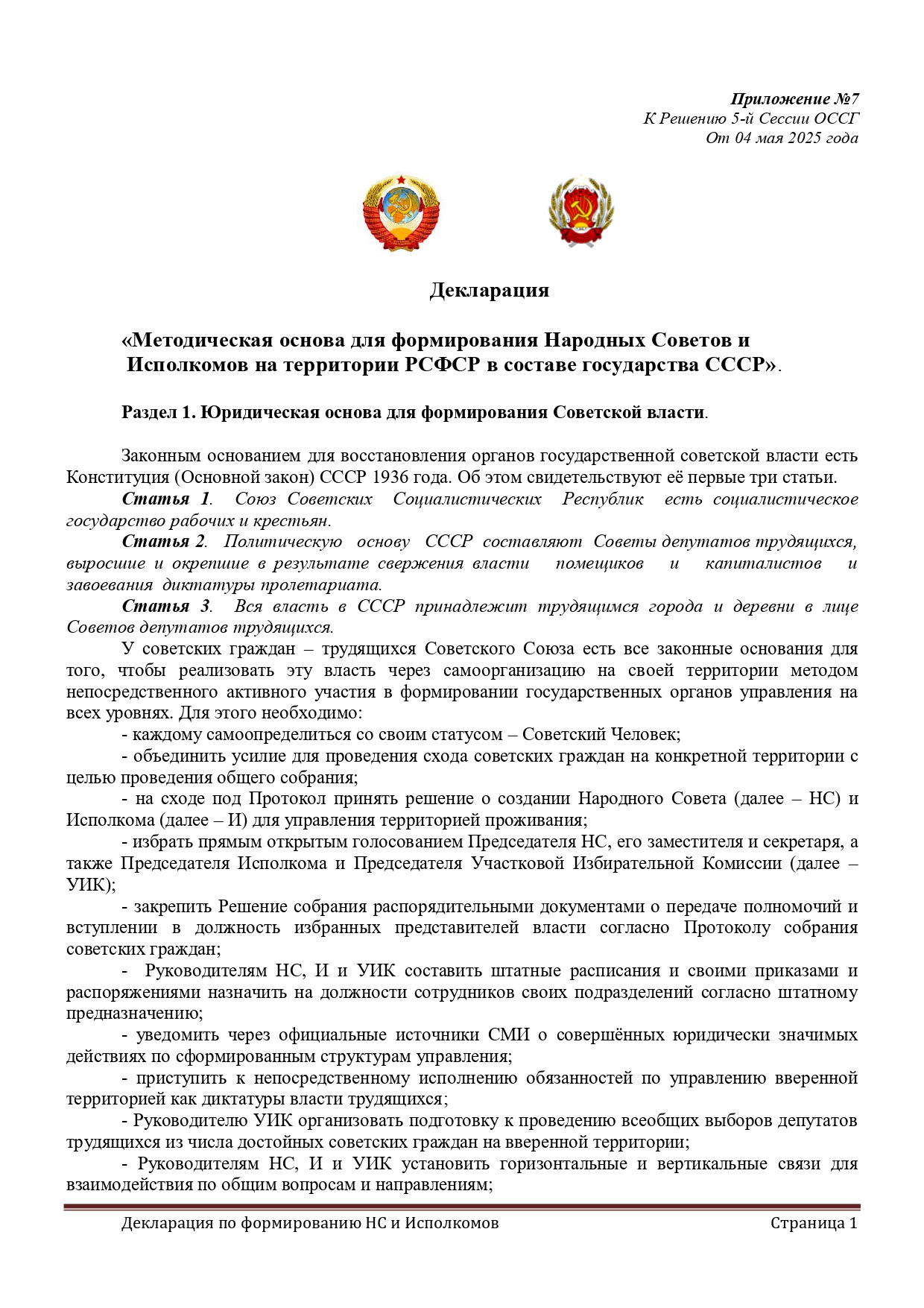 Публикации материалов Объединительного Съезда Советских Граждан (ОССГ)