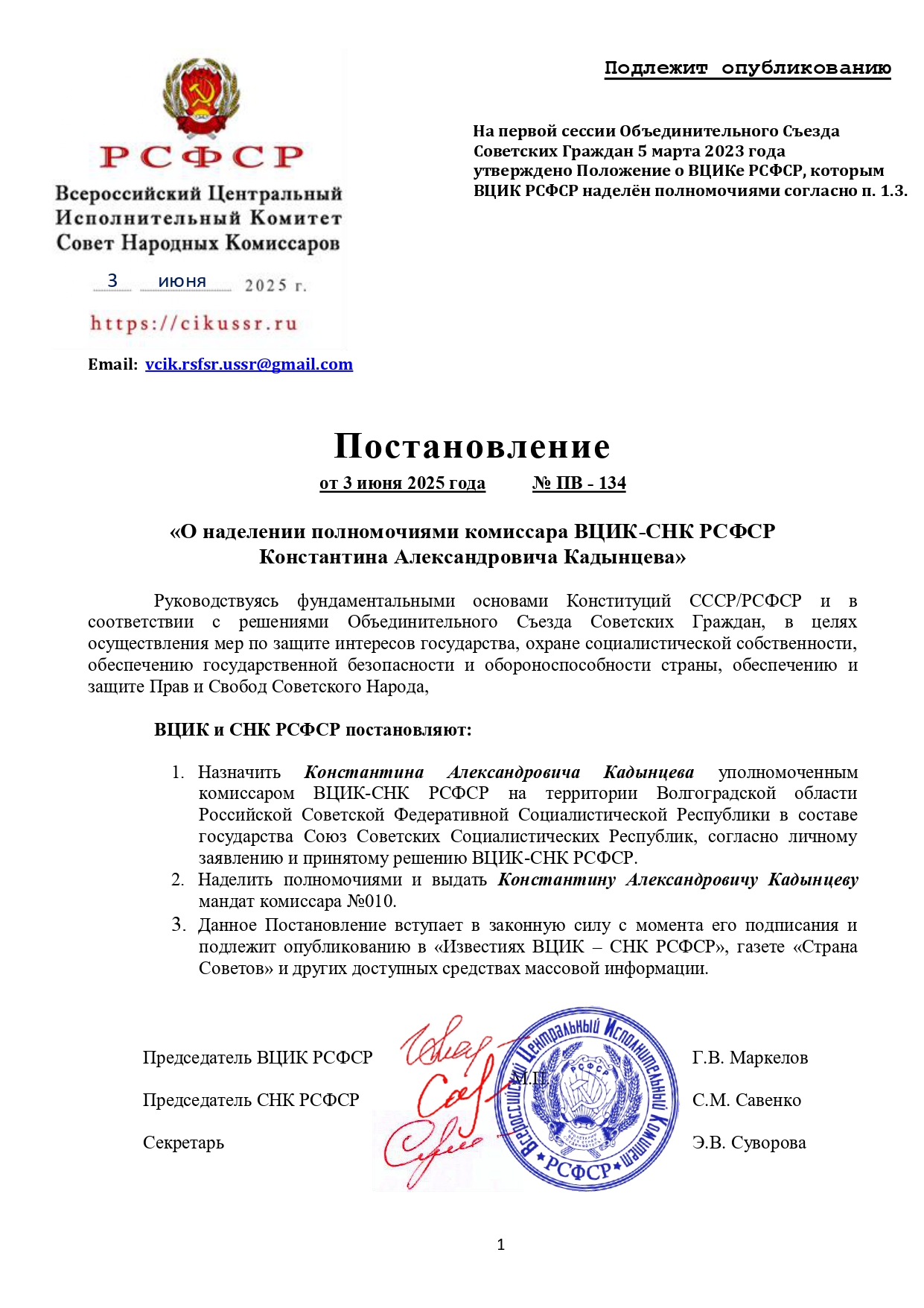 Публикации Постановлений ВЦИК-СНК РСФСР