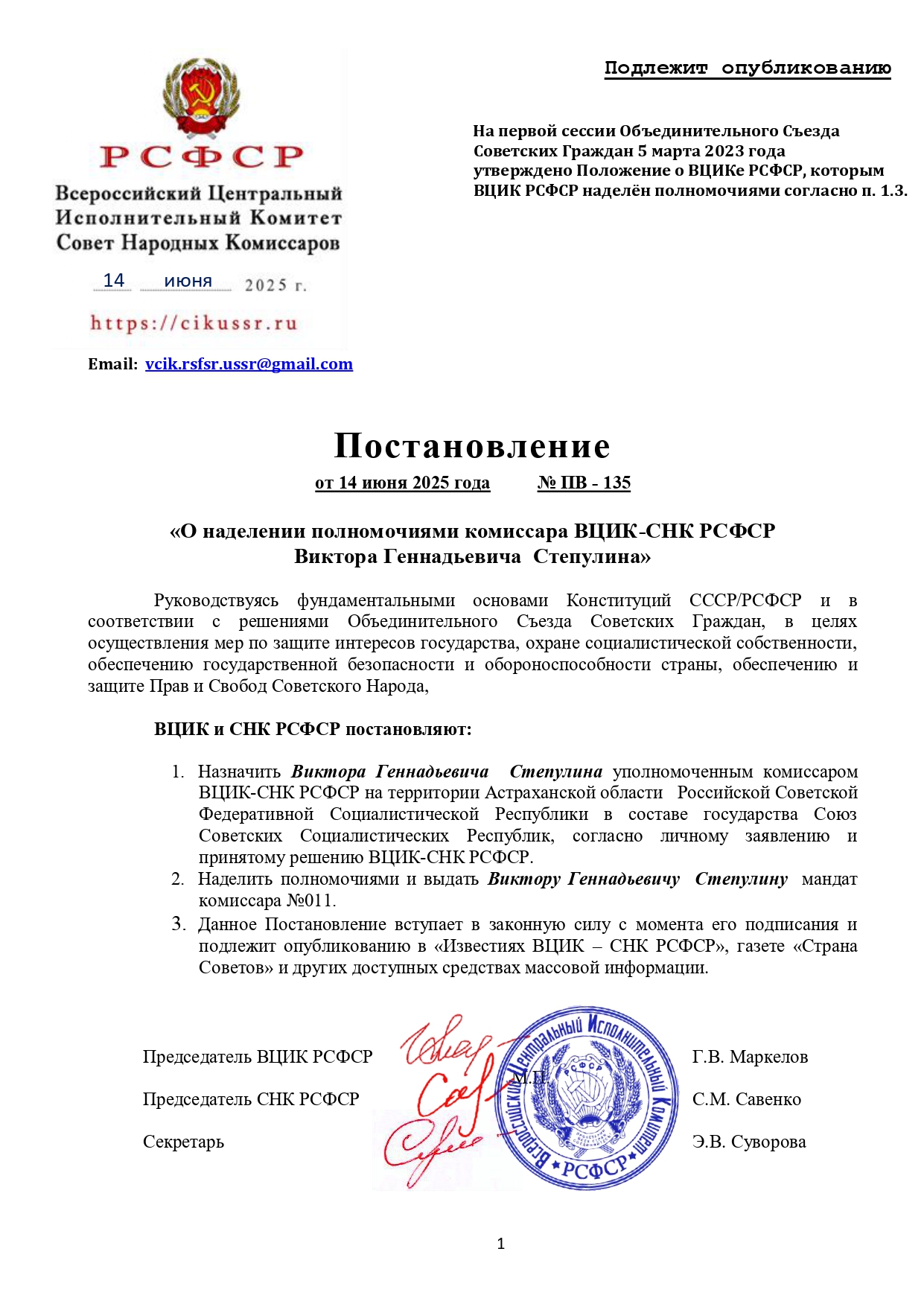 Публикации Постановлений ВЦИК-СНК РСФСР